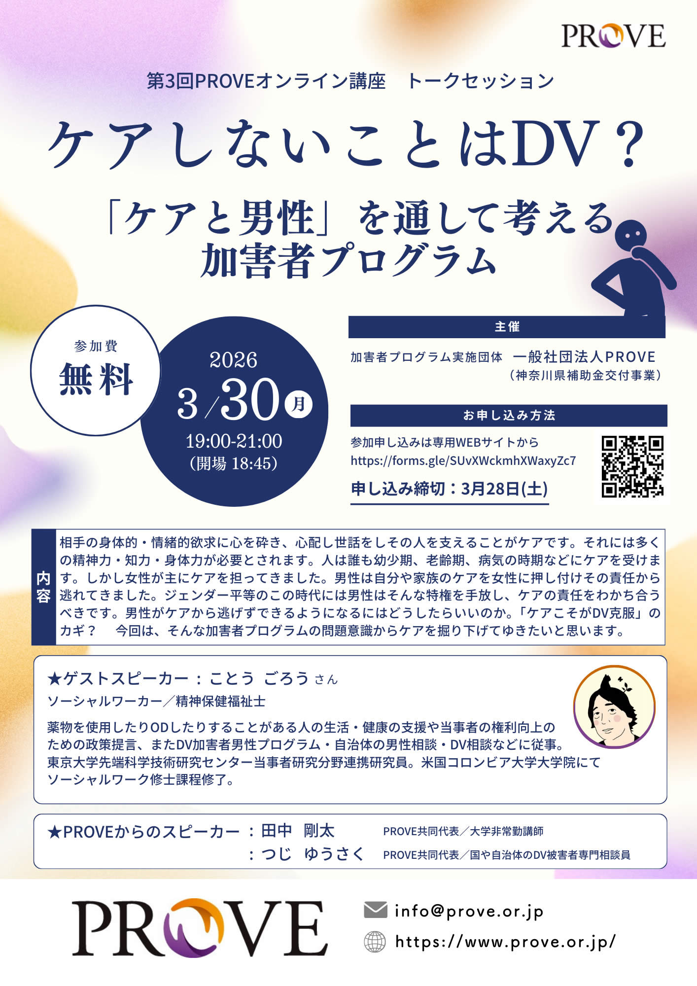 - PROVEオンライン講座『ケアしないことはDV?~「ケアと男性」を通して考える加害者プログラム』